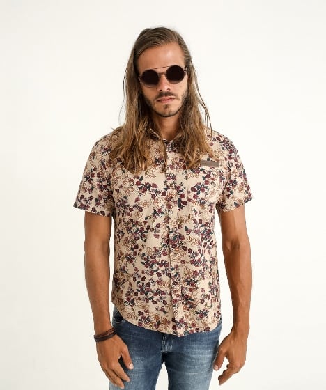 CAMISA MANGA CURTA FLORAL OCRE – Imagem: Divulgação